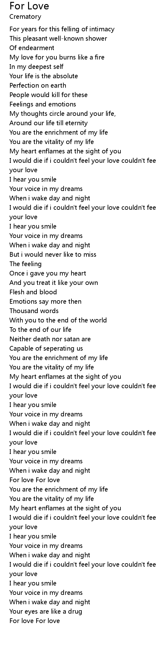 I would die if i couldn't feel your love couldn't feel your love couldn't feel your love |