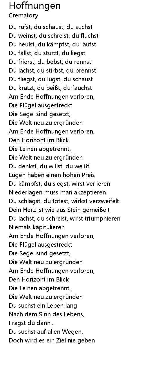 | Du schlägst, du tötest, wirkst verzweifelt | |