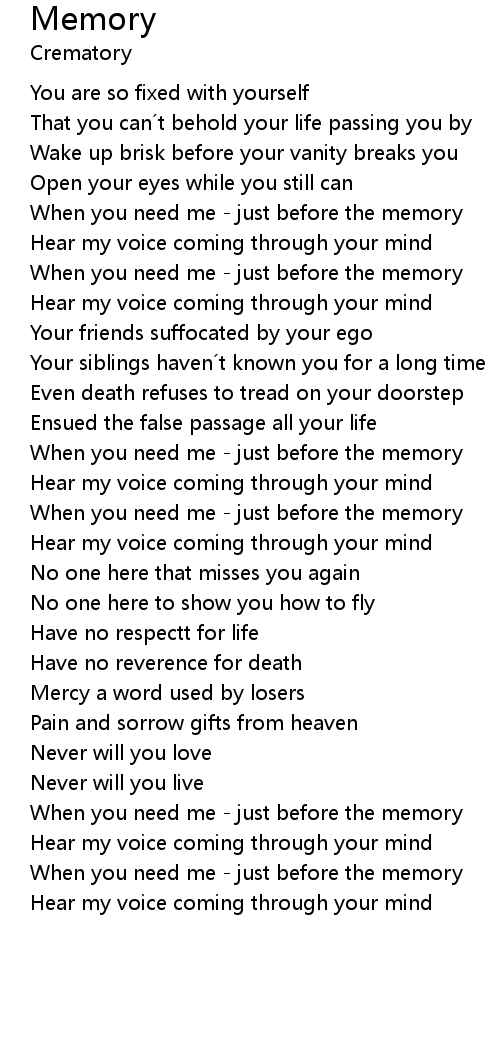 | When you need me just before the memory | |