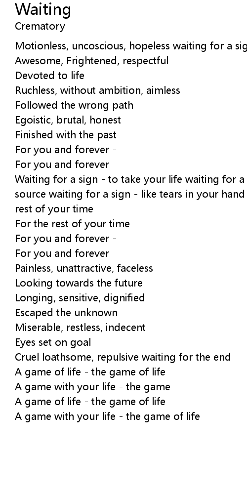 | Waiting for a sign - to take your life waiting for a sign - looking for the source waiting for a sign - like tears in your hand waiting for a sign - for the rest of your time | |