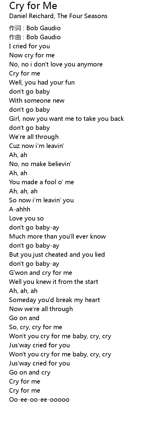 | Won't you cry for me baby, cry, cry | |