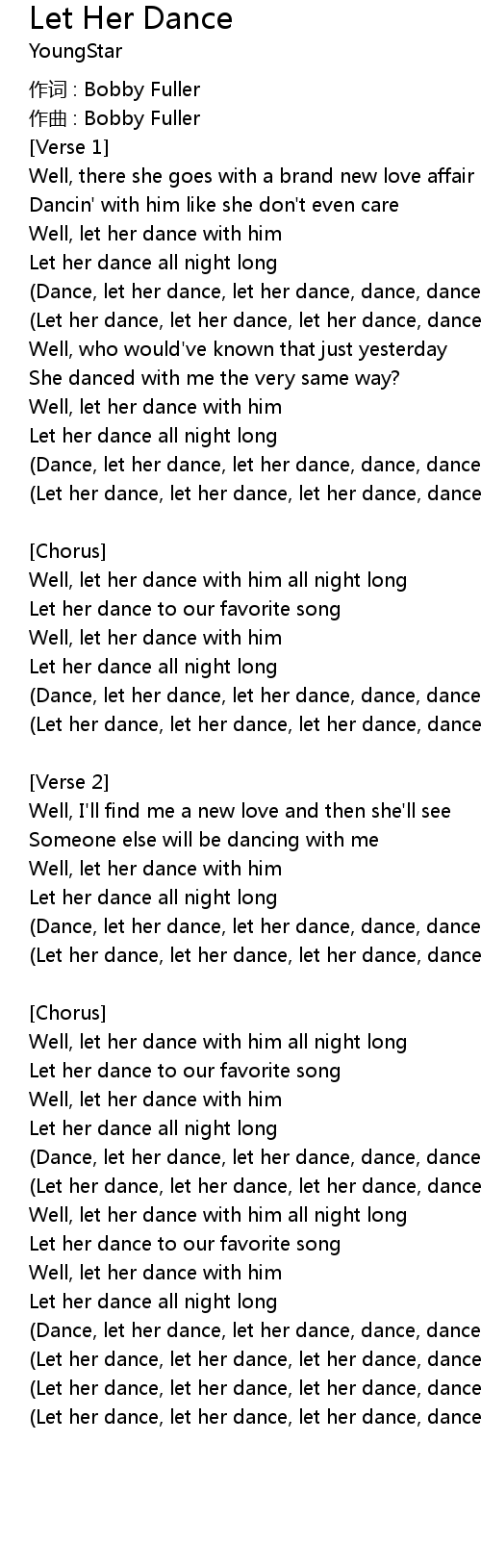 | (Let her dance, let her dance, let her dance, dance, dance) | |