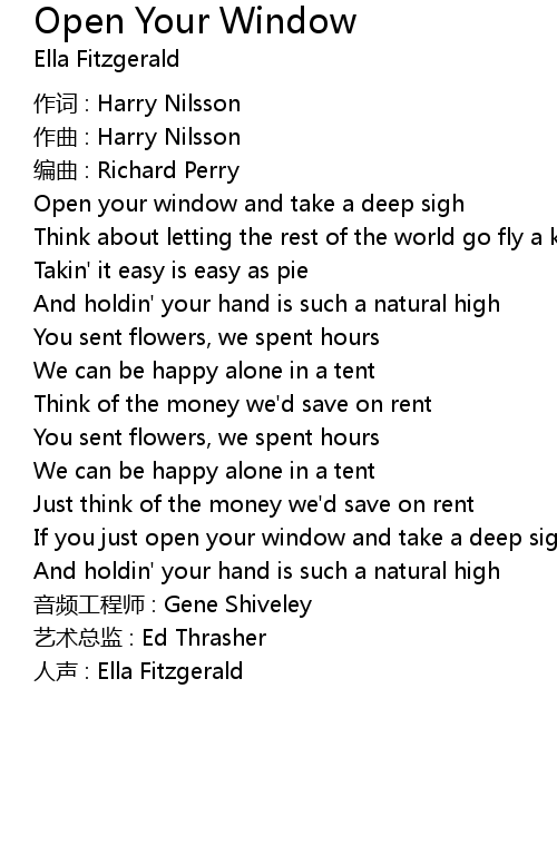| Song | Open Your Window |