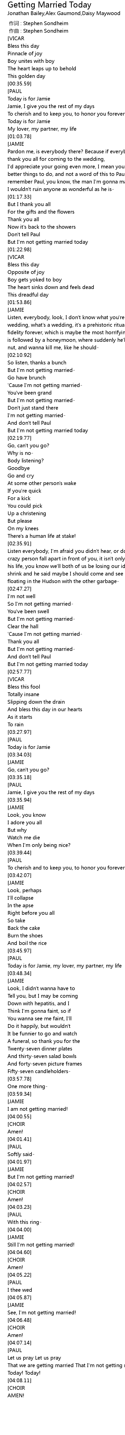 | [02:55.15] | But I'm not getting married today |