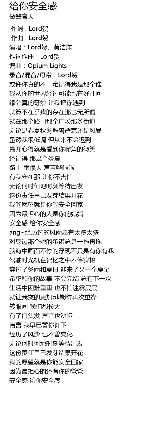 | [02:04.033] | ān quán gǎn gěi nǐ ān quán gǎn |