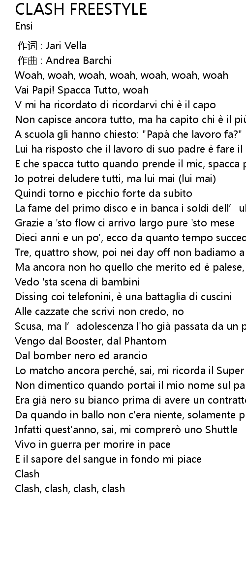 | [00:46.16] | Lui ha risposto che il lavoro di suo padre e fare il rap |