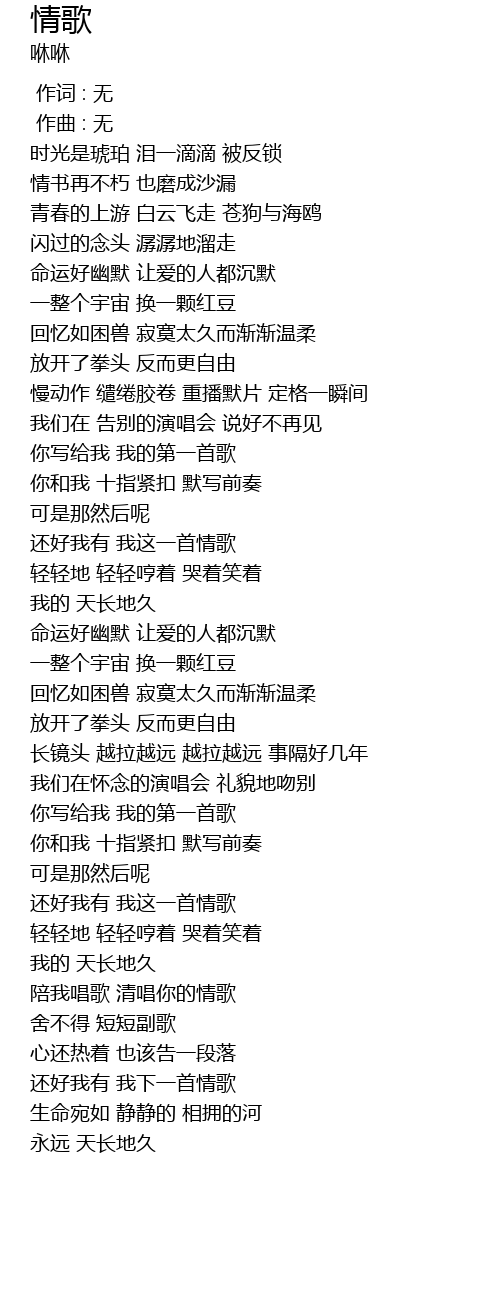 | [01:35.204] | 你写给我 我的第一首歌 |