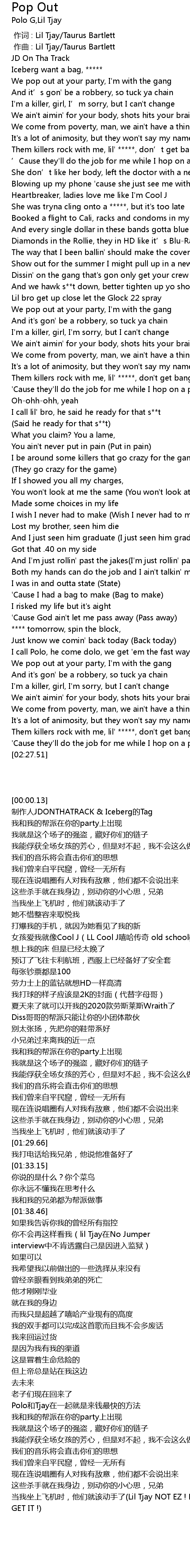 | [00:00.000] | 作词 : Lil Tjay/Taurus Bartlett |