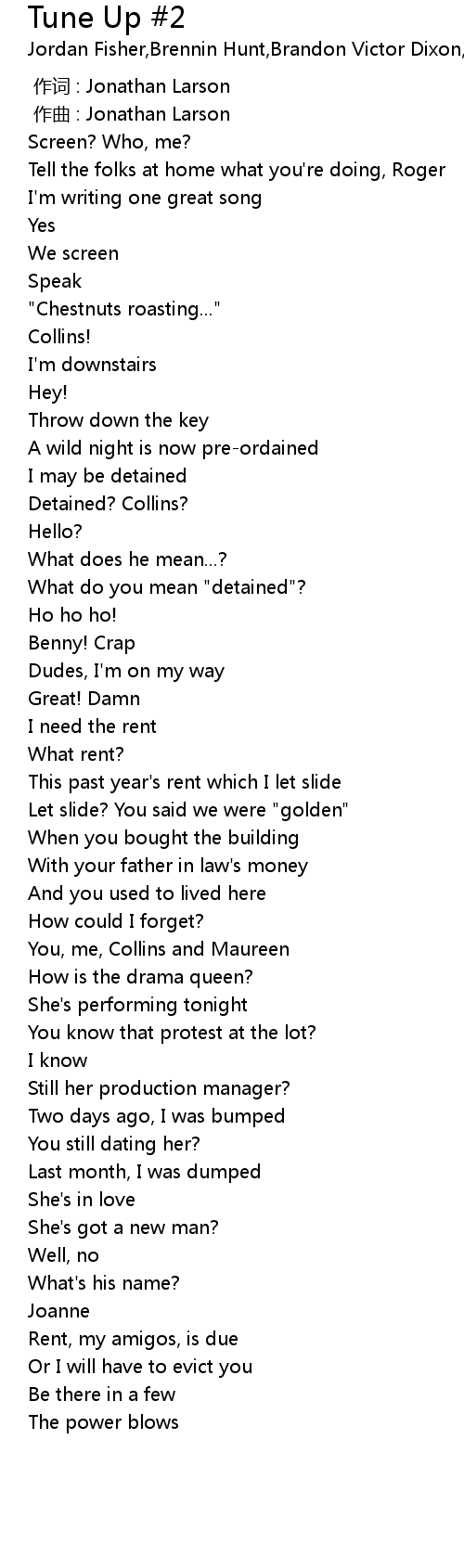 | [00:00.000] | zuò cí : Jonathan Larson |
