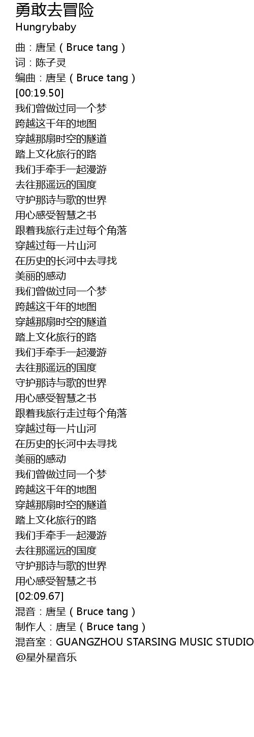 | [02:12.67] | 混音室:GUANGZHOU STARSING MUSIC STUDIO |