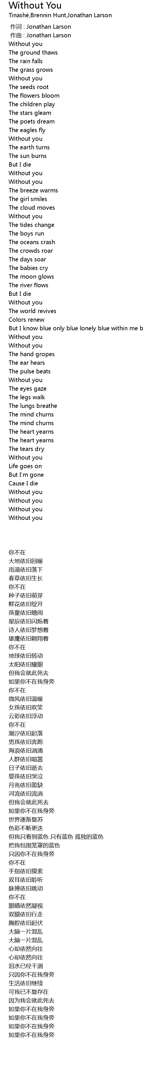 | [01:31.13] | Without you |