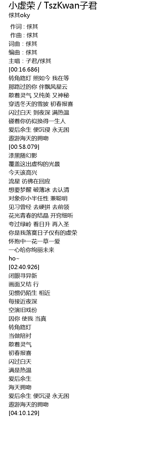 | [01:47.682] | 你是我落寞日子仅有的虚荣 |