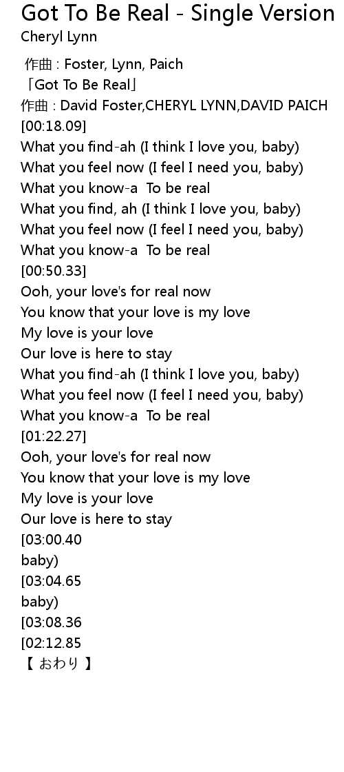 | [00:01.09] | 「Got To Be Real」 |