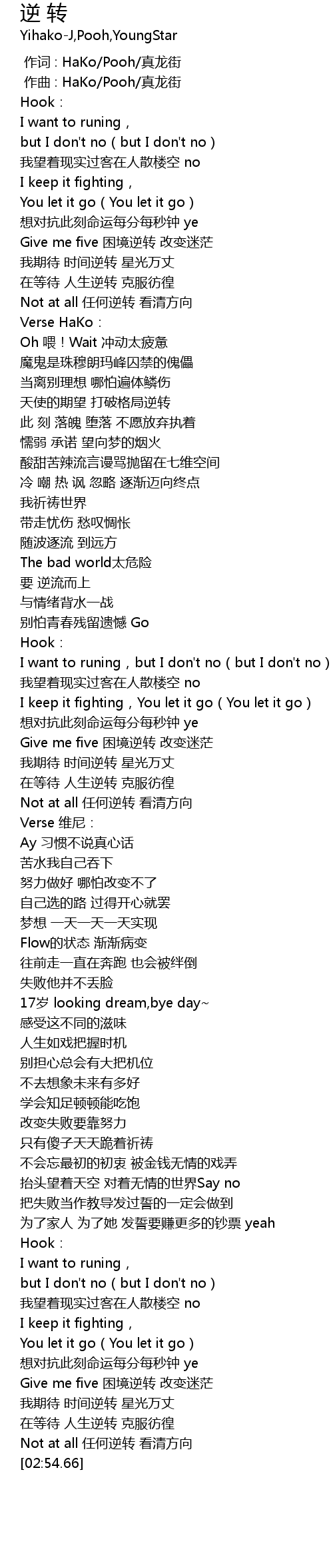 | [02:37.40] | Give me five kùn jìng nì zhuǎn gǎi biàn mí máng |