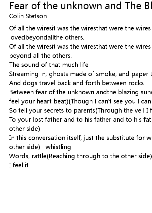 Between fear of the unknown andthe blazing sun(Though there is stillness I can feel your heart beat)(Though I can't see you I can hear a sound) |