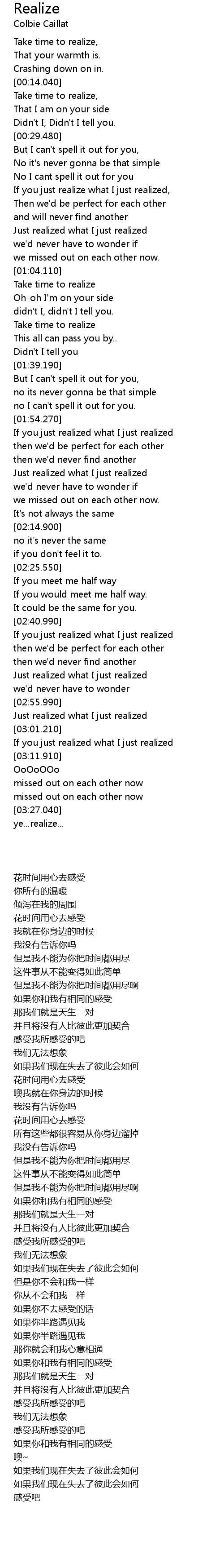 Take time to realize, |