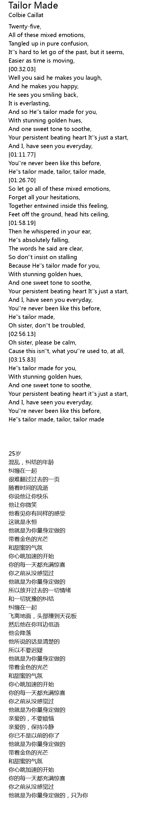 [01:18.20] He''s tailor made, tailor, tailor made,