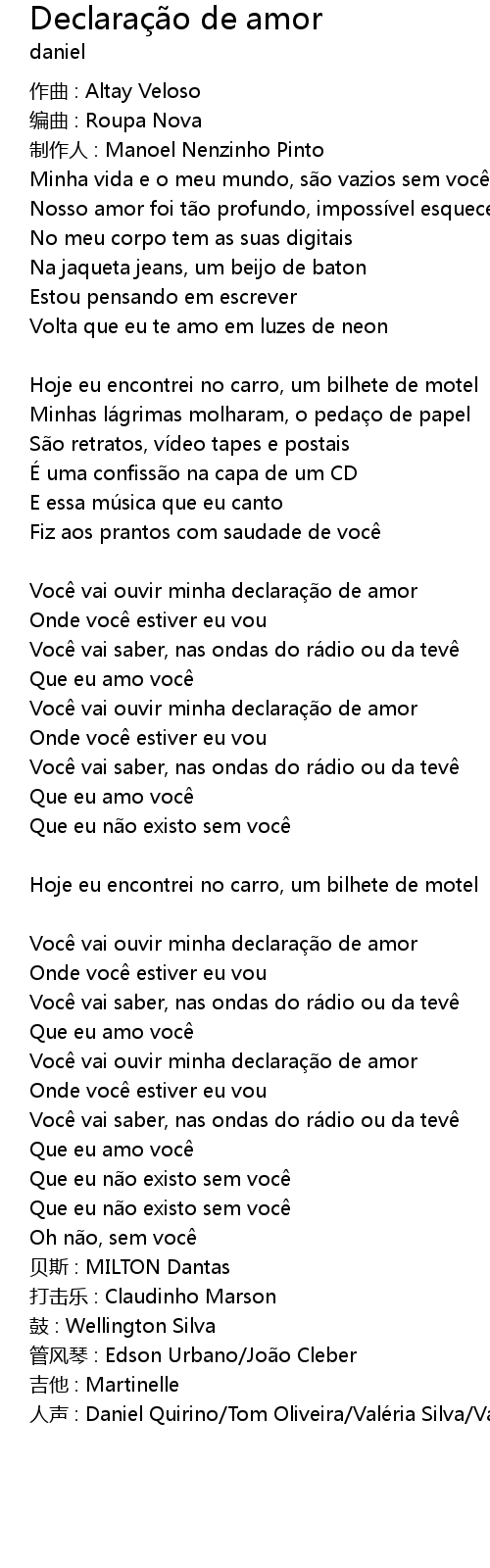 | 人声 : Daniel Quirino/Tom Oliveira/Valéria Silva/Valéria Tosta |