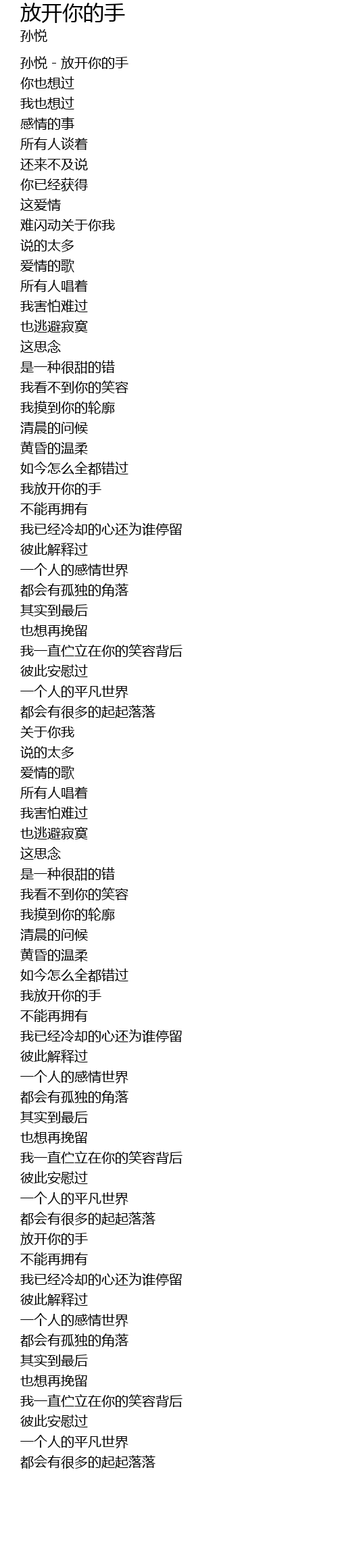 | [03:03.29] | wǒ fàng kāi nǐ de shǒu |