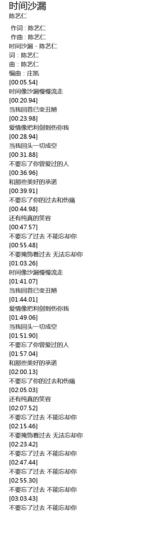 | [00:00.17] | 时间沙漏 - 陈艺仁 |