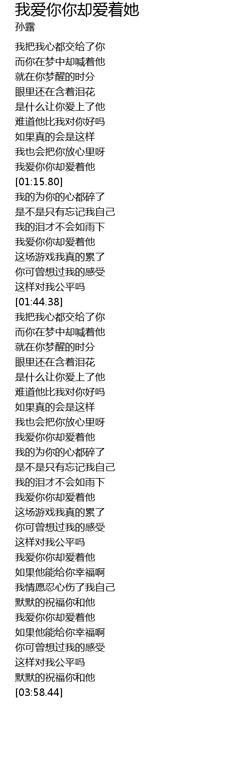 | [03:20.56] | 我爱你你却爱着他 |