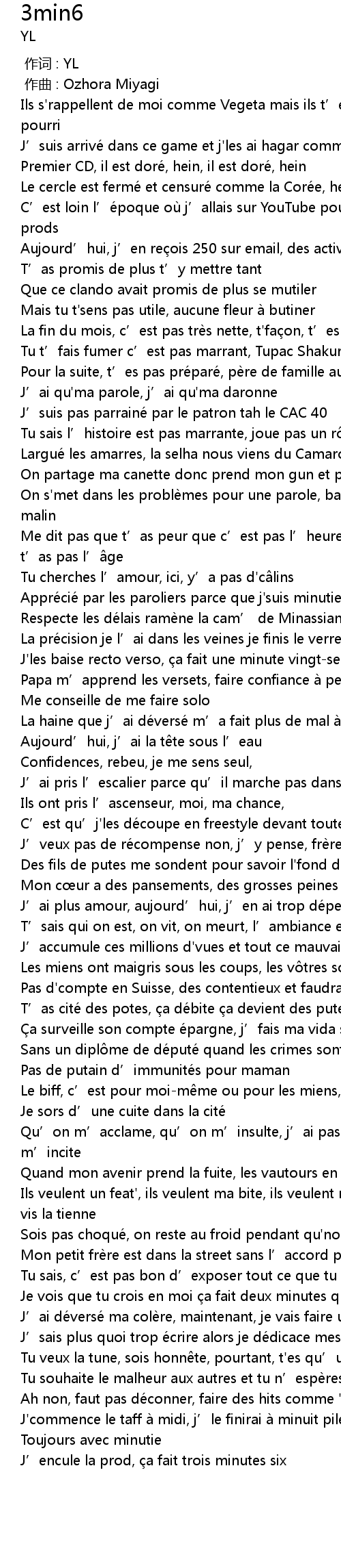 | [03:03.37] | J' encule la prod, a fait trois minutes six |