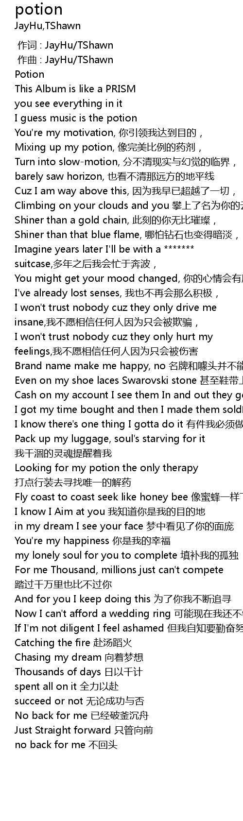 | [00:33.73] | Mixing up my potion, xiàng wán měi bǐ lì de yào jì, |