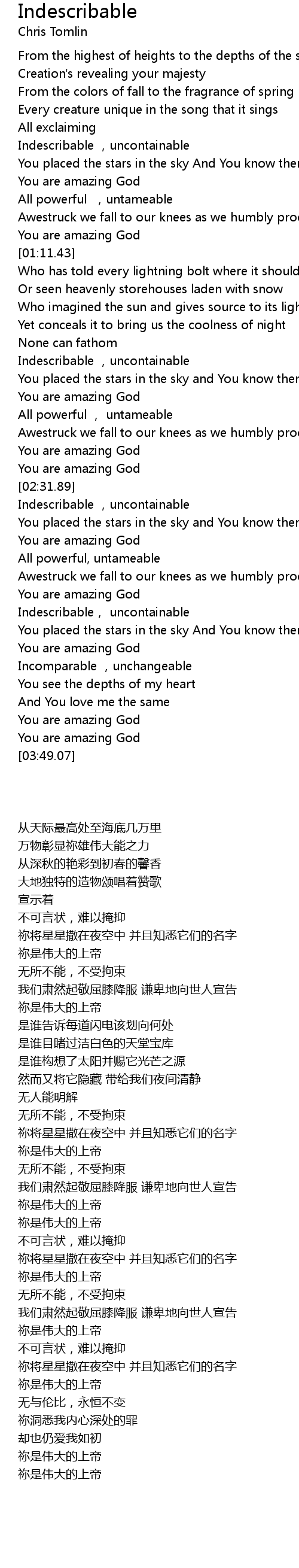 | [00:44.14] | You placed the stars in the sky And You know them by name |