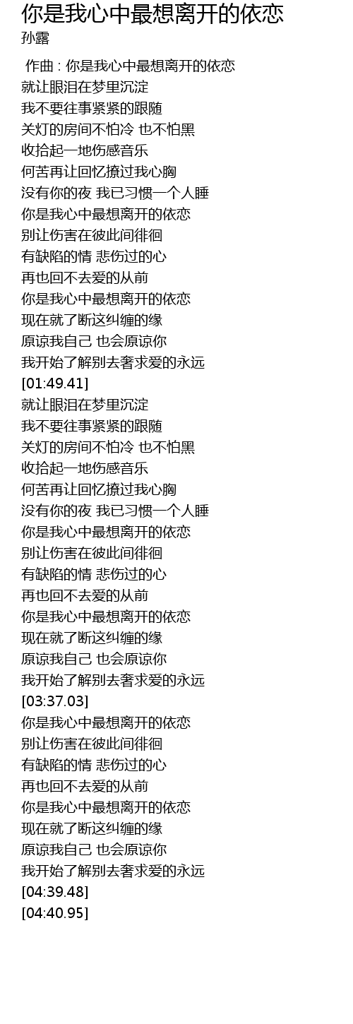 | [04:13.42] | 你是我心中最想离开的依恋 |