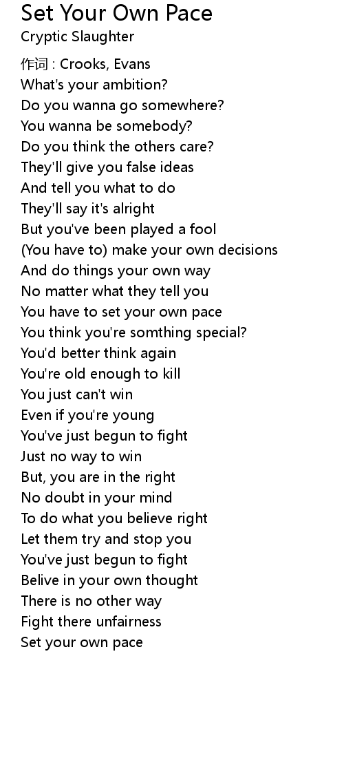 | You have to set your own pace | |