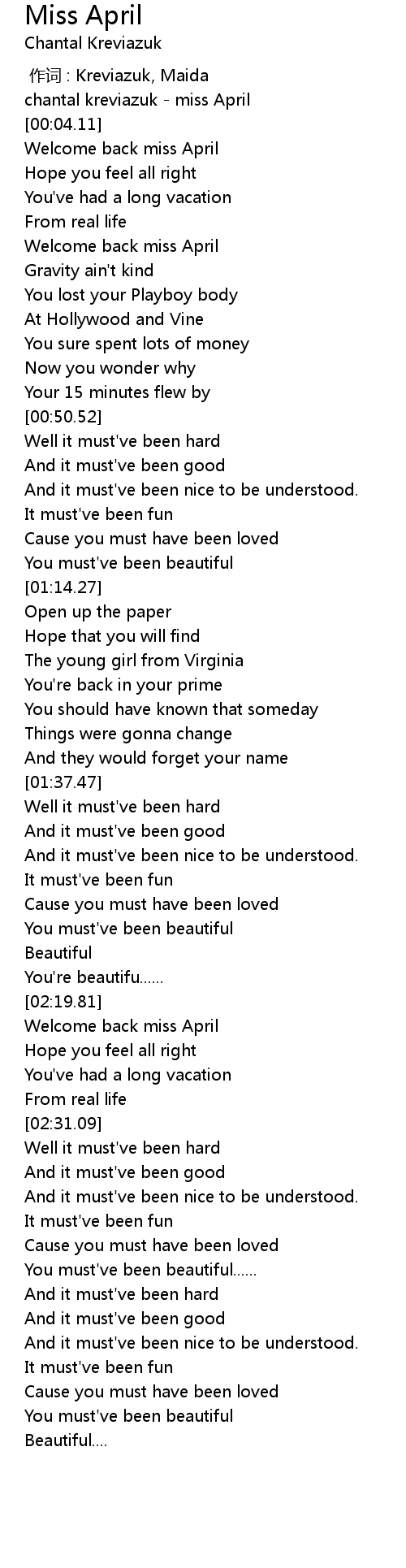 | [00:00.00] | 作词 : Kreviazuk, Maida |