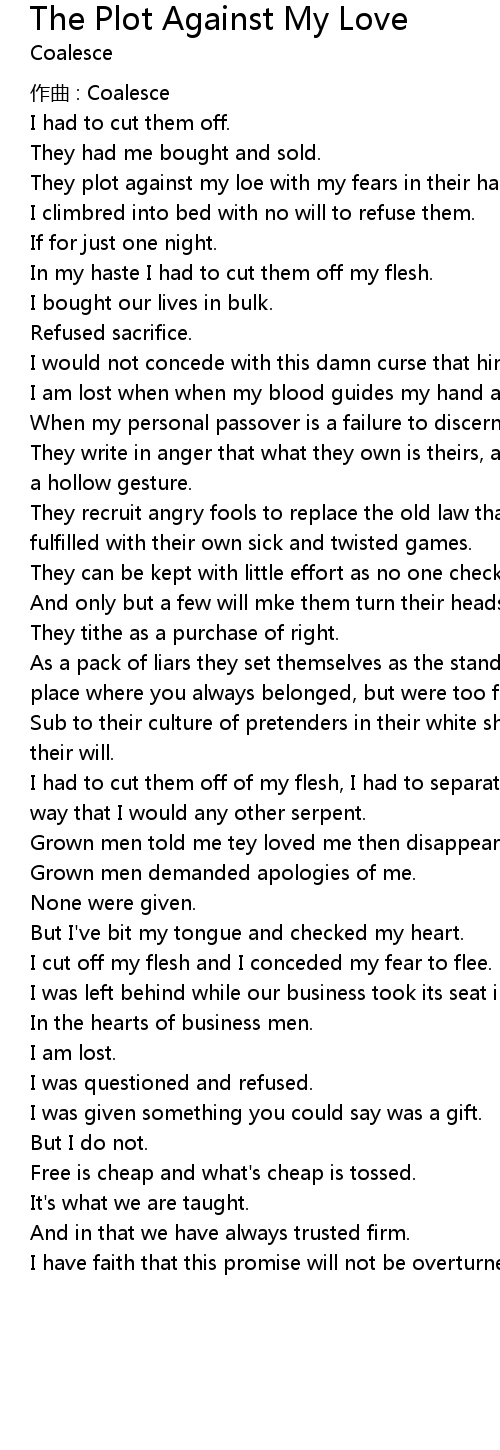 | I am lost when when my blood guides my hand and chooses to ignore. | |