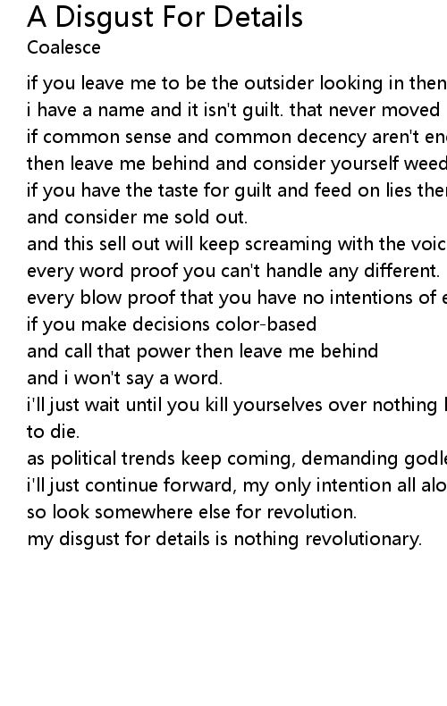 i'll just wait until you kill yourselves over nothing but flesh one thing's sure to die.
