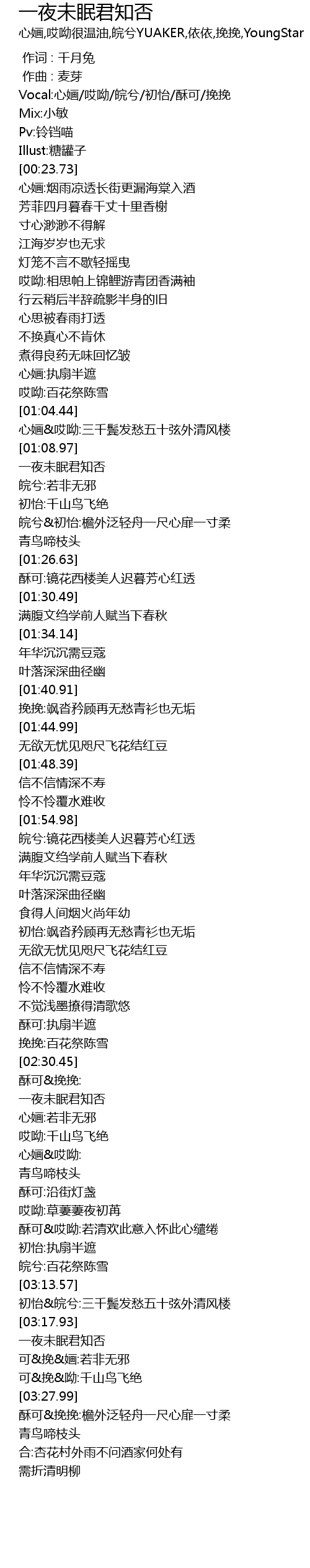 | [01:09.71] | yī yè wèi mián jūn zhī fǒu |