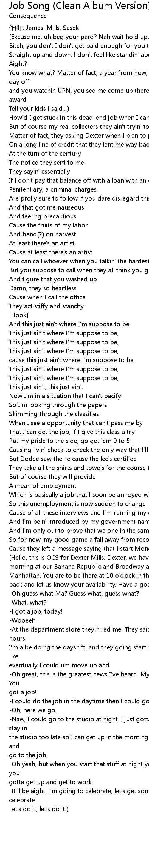 | Song | Job Song (Clean Album Version) - Explicit Album Version |