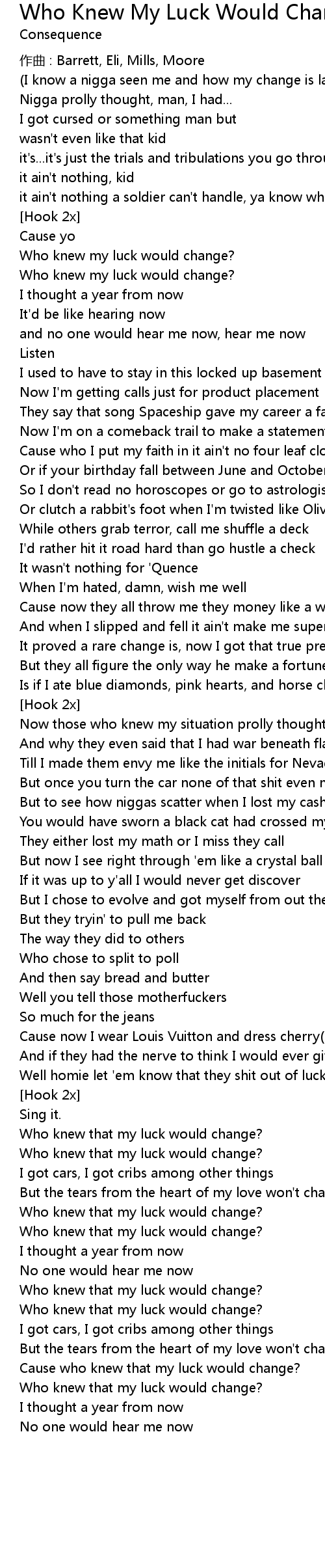 | Song | Who Knew My Luck Would Change (Album Version) |