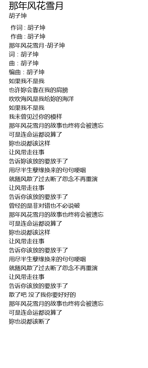 | [00:03.800] | 那年风花雪月-胡子坤 |