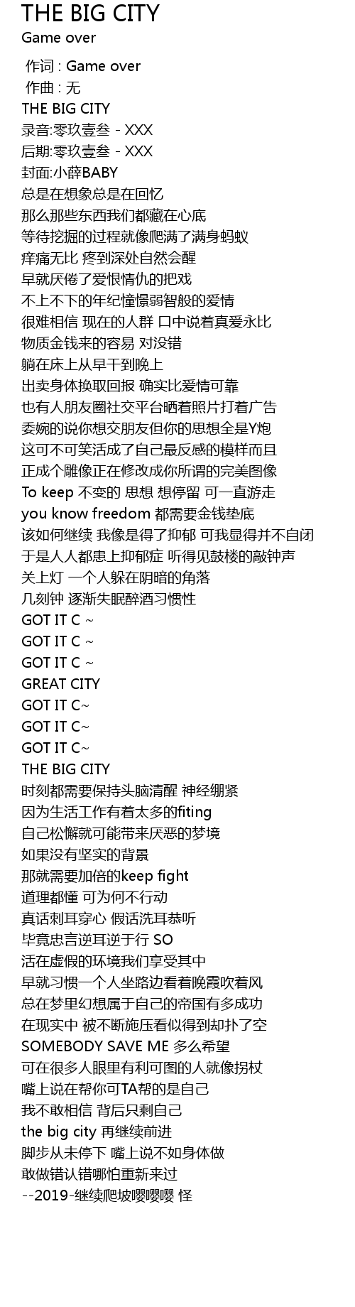 | [02:09.218] | the big city zài jì xù qián jìn |