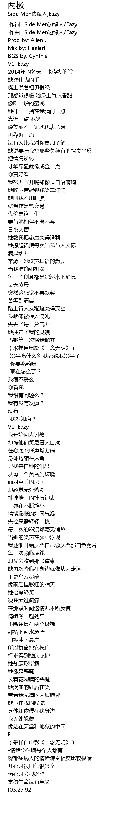 | [00:00.000] | 作词 : Side Men边缘人/Eazy |