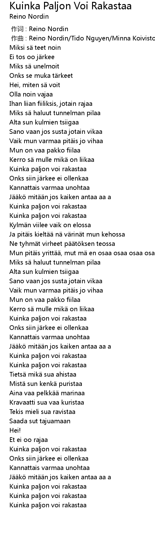 | [02:50.14] | Kuinka paljon voi rakastaa |