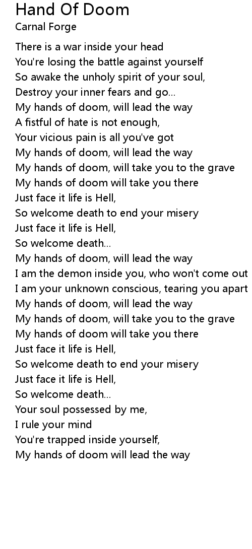 My hands of doom will lead the way |