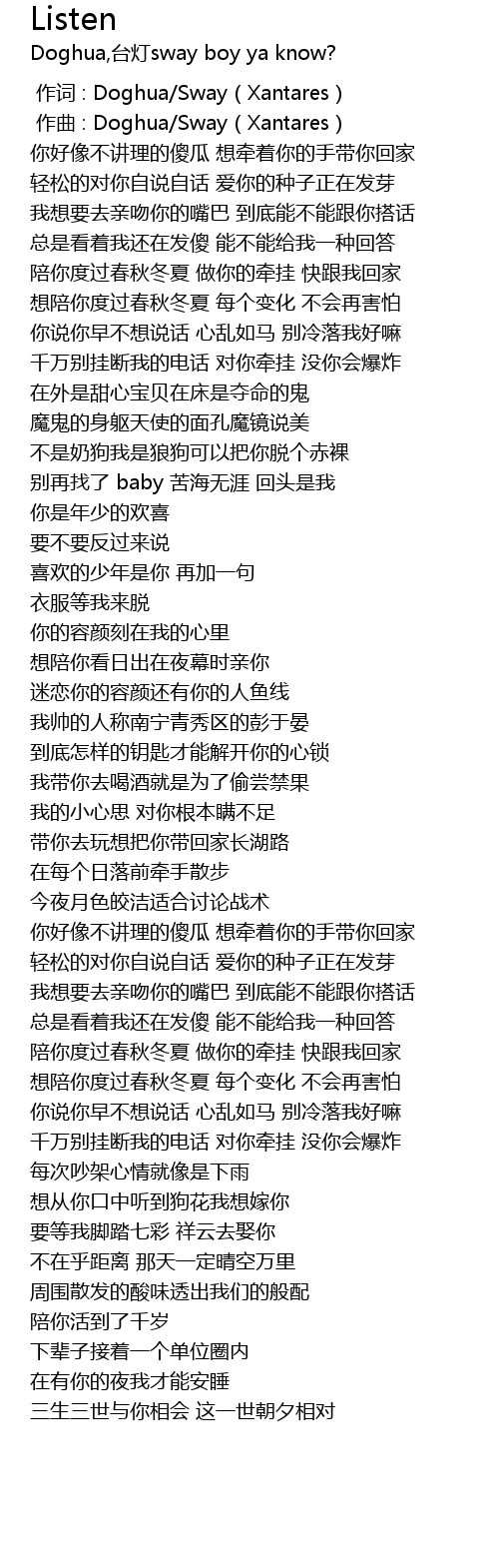 | [00:00.000] | zuò cí : Doghua Sway Xantares |