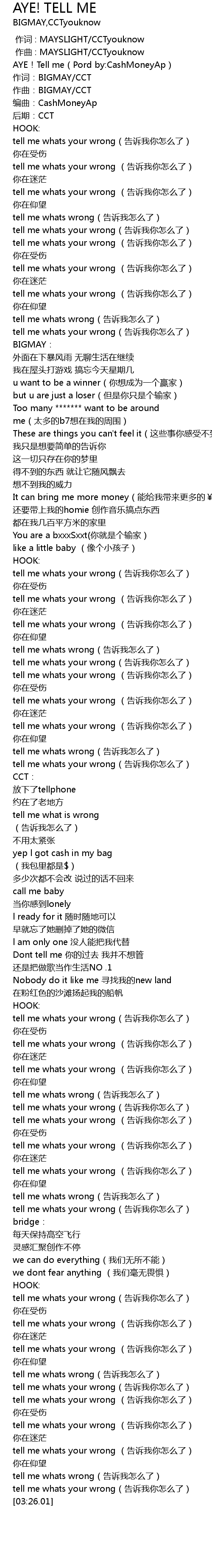 | [00:03.10] | AYE!Tell me(Pord by:CashMoneyAp) |