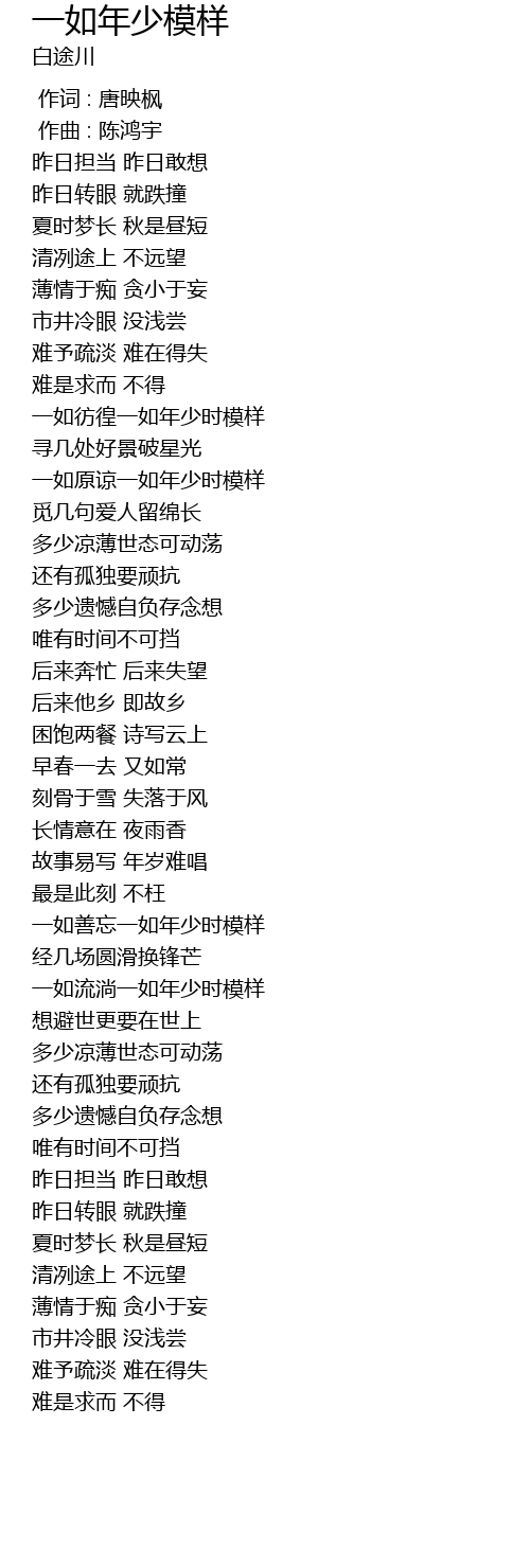 | [00:30.697] | yī rú páng huáng yī rú nián shào shí mú yàng |