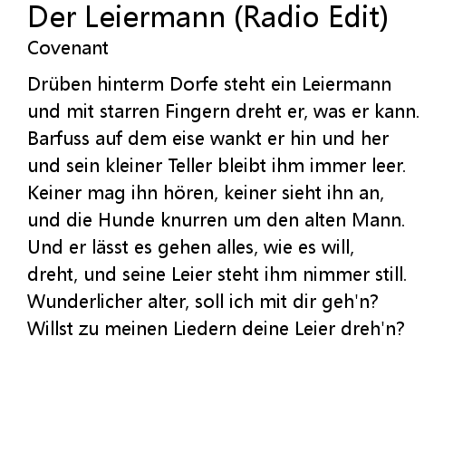 | Drü ben hinterm Dorfe steht ein Leiermann | |