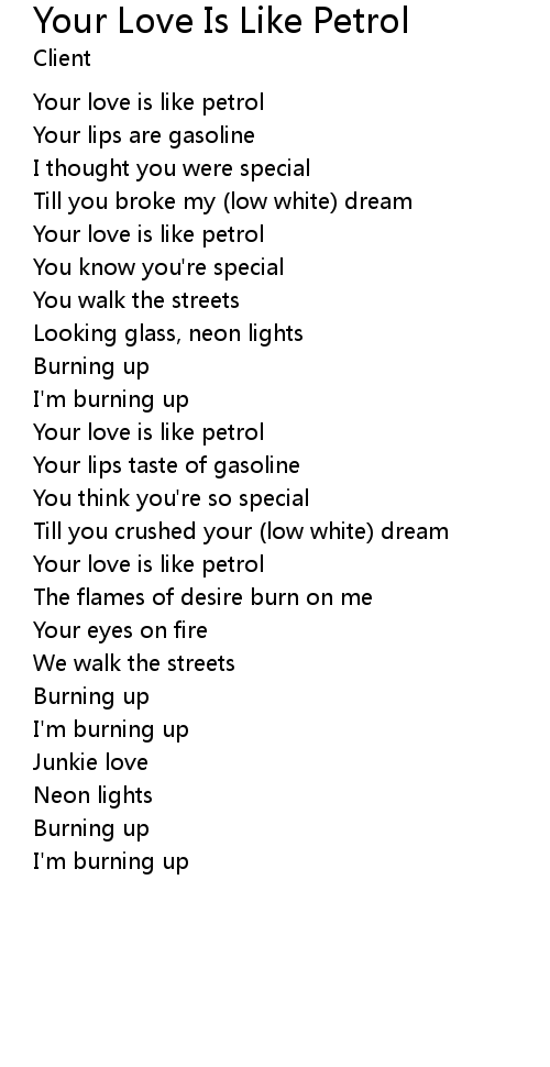 | Your love is like petrol | |