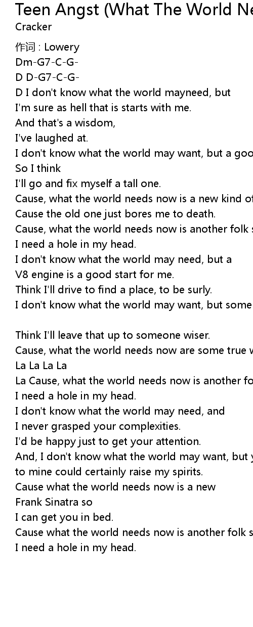 | I don't know what the world may want, but some words of wisdom could comfort us. | |