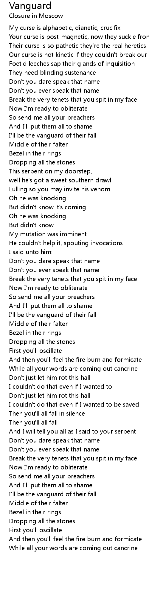 Break the very tenets that you spit in my face |
