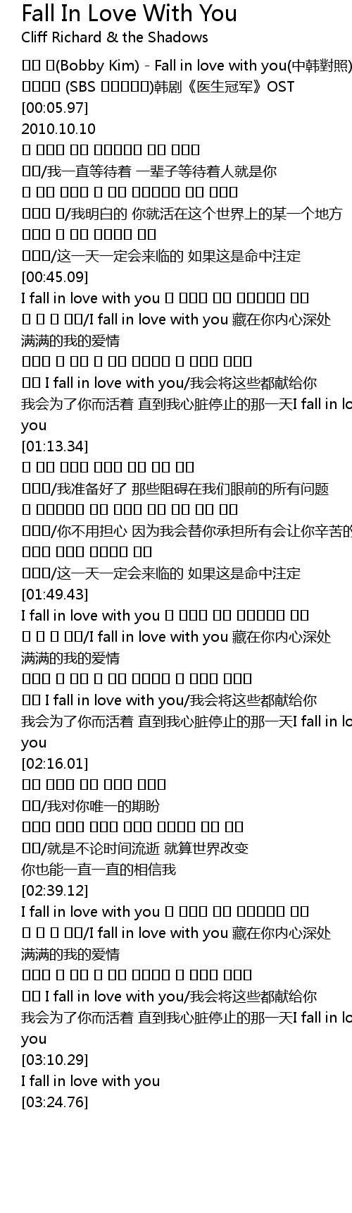 | [00:00.12] | 바비 킴(Bobby Kim) - Fall in love with you(中韩對照) |
