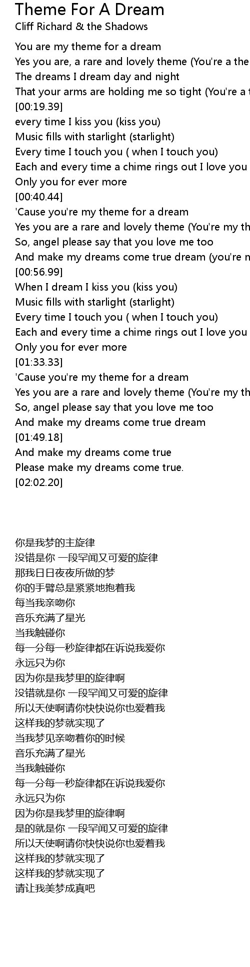 [00:52.47] And make my dreams come true dream (you're my theme for a dream)
